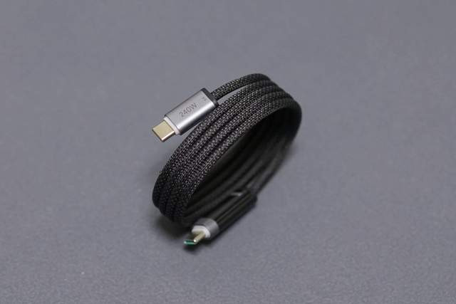 其次这款线材采用了尼龙编制材质,无论手感还是耐用度都是普通橡胶类比不了的,同时线材支持最高240W/6A的输出能力,对于现在的插头性能而言绝对绰绰有余。