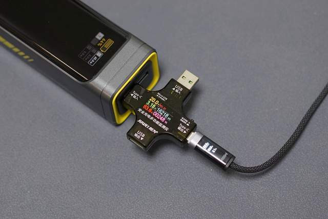 为了测试峰值功率,我用这款插头给充电宝进行充电,直接跑到了63.6W,性能拉满。