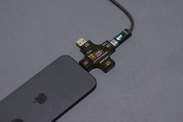 最后值得一说的就是这款线居然还带有一个小屏幕,在上面可以清晰的看到电压、电流和功率的实时情况;我和自己的功率计测试了一下,数据非常准确,几乎没有偏差。买线送功率测试计,简直是一举两得。