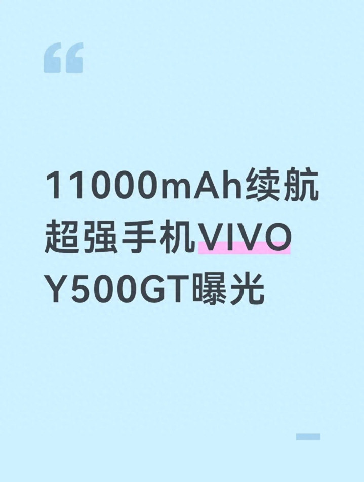 2026年春节刚过,手机市场便迎来重磅新机消息。据供应链、工信部入网信息及多位头部数码博主最新爆料,vivo将在春节后推出主打超长续航的Y500GT,该机搭载11000mAh超大容量硅碳负极电池与天玑8500处理器,同时配备90W快充、高刷屏、全场景耐用配置,定位千元实用级市场,一经曝光便成为户外工作者、续航刚需用户的重点关注对象,堪称开年最具诚意的“续航怪兽”。