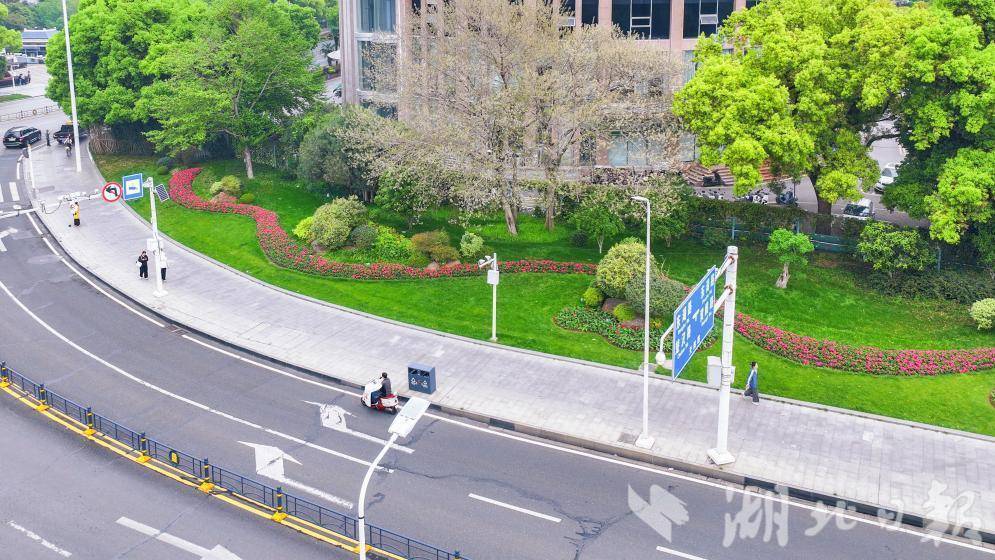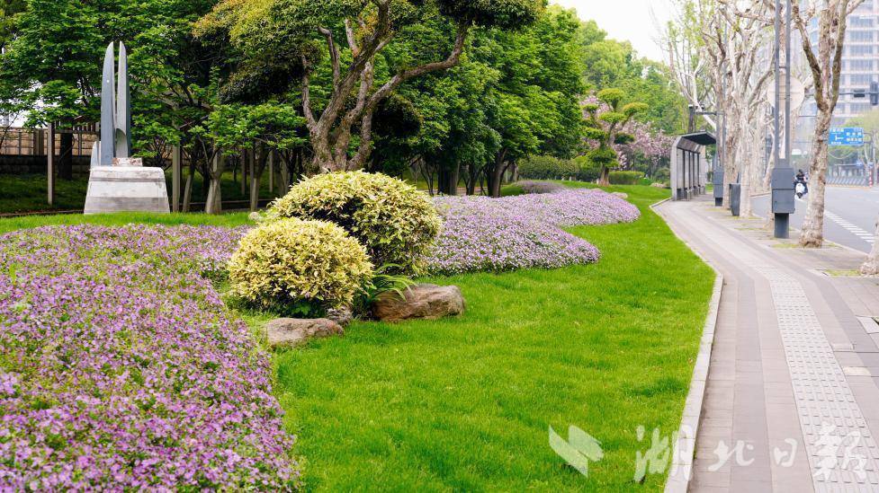湖北日报讯(记者张竞恒、通讯员费帆、李玲)4月9日凌晨,一场大雨浸润武汉江城。10日,雨歇天晴,不少武昌市民惊喜发现,街头的花坛、路口渠化岛、沿线游园的绿植经过雨水冲洗得格外清新鲜亮,通勤路上草木与鲜花的香气扑面而来,让日常出行变成了一场“沉浸式赏景”。