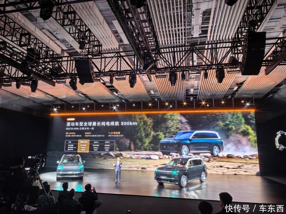 在配置方面,零跑D19增程版搭载了80.3kWh的超大电池,带来了500km的纯电续航,纯电版则采用全栈1000V的架构,还有三电机、双高通8797芯片、双腔闭式空悬等等配置,零跑科技创始人、董事长兼CEO朱江明也在现场喊出零跑D19是“顶配中的顶配”。