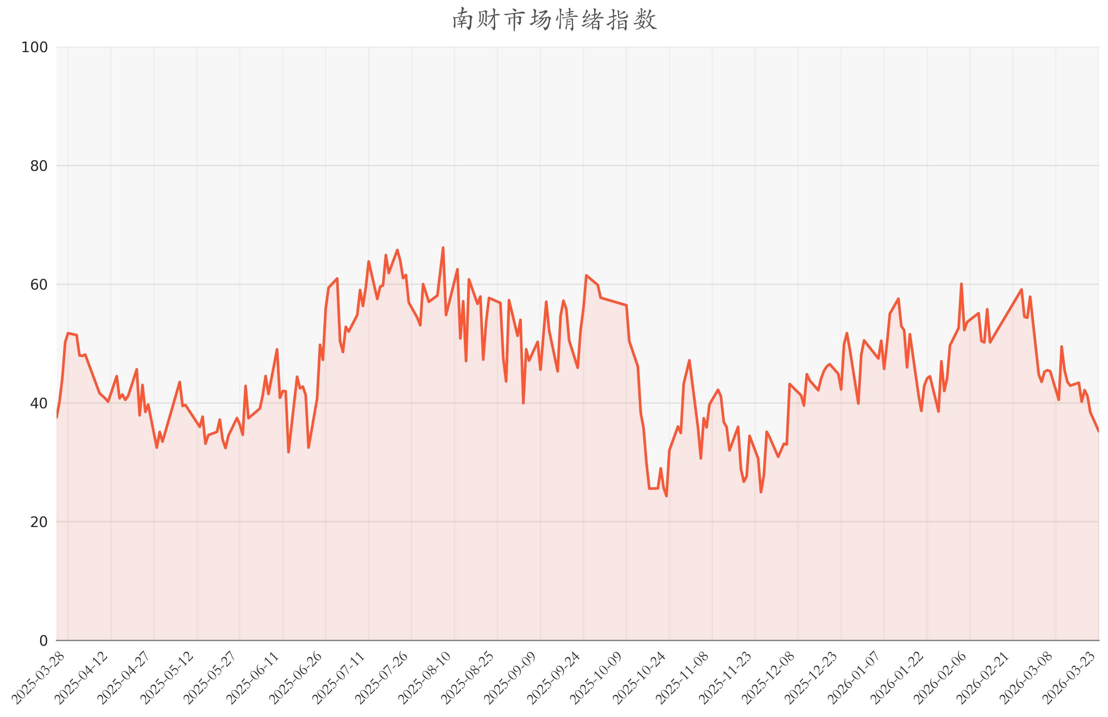 南财智讯3月24日电,今日南财市场情绪指数为35.24,较前一交易日38.46有所下跌,市场投资热度降低。从各个细分指标结果上看,股债回报差处于近一年来中立水平,说明投资者持中立情绪,两融交易额占比与升贴水率处于近一年来较低水平,说明投资者认为市场趋于触底反弹,ETF净买入额差值处于近一年来较高水平,说明投资者持看多情绪。除了上述指标之外,50ETF期权隐含波动率波动较高,说明投资者预期市场振幅较大。市场的变化并不由单一的指数或指标所决定,做好资产的均衡配置才能在浮沉的市场中坦然自若。