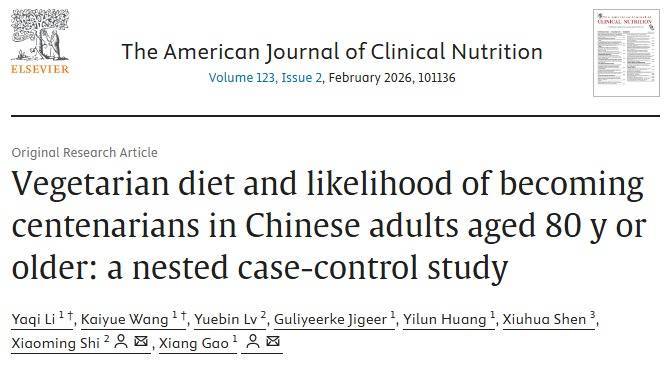 2025年,复旦大学的研究人员在《美国临床营养学杂志》上发表了一项研究,该研究对5000余名年龄>80岁的受试者进行了调查,随机将受试者分成杂食组、素食组,并将素食者进一步分成鱼素食者、蛋奶素食者以及纯素食者。