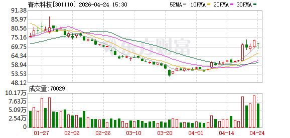 4月26日,青木科技(301110)公布2026年一季报,公司营业收入为3.43亿元,同比上升25.1%;归母净利润为4212万元,同比上升320.5%;扣非归母净利润为2982万元,同比上升250.6%;经营现金流净额为-1539万元,同比下降125.3%;EPS(全面摊薄)为0.4552元。