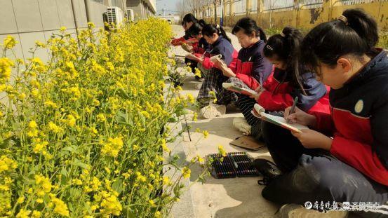 活动中,美术老师紧扣校园春日景致,以“识花、赏景、绘美”为核心,引导学生走出教室,聚焦校园里的桃花、迎春花、海棠等春日花卉,从花瓣形态、花蕊纹理、枝叶脉络到色彩层次,开展沉浸式观察教学。同学们手持画板,分组来到校园花坛、农耕园旁,近距离触摸花瓣质感、辨别花卉种类、捕捉光影下的花朵灵动姿态,在观察中积累审美认知,在交流中迸发创作灵感。